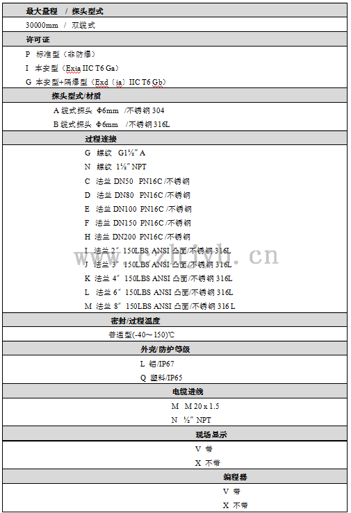 外殼                                            鋁,塑料,不銹鋼316L